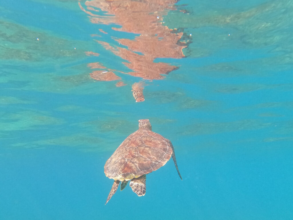 You can see green turtles, dolphins and even whale sharks slipping through the tropical waters at the right time of year.